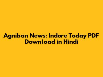 Agniban News: Indore Today PDF Download In Hindi