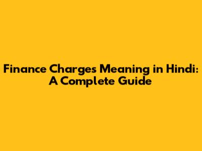 Finance Charges In Hindi: Understanding The Basics