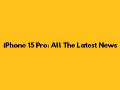 IPhone 15 Pro: All The Latest News