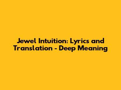 Jewel Intuition: Lyrics And Translation - Deep Meaning
