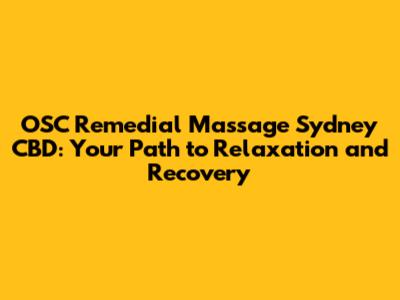 Unveiling the Magic of OSC Remedial Massage in Sydney CBD