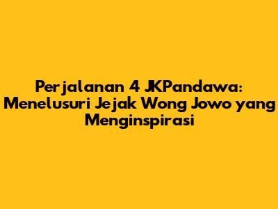 Perjalanan 4 JKPandawa adalah sebuah kisah yang merangkum perjalanan hidup empat sosok luar biasa dari wong Jowo. Mereka bukan hanya individu biasa, melainkan representasi dari semangat, ketahanan, dan kearifan yang melekat dalam budaya Jawa. Kisah mereka adalah inspirasi bagi kita semua, terutama bagi mereka yang ingin memahami lebih dalam tentang nilai-nilai luhur yang membentuk identitas wong Jowo. Dalam artikel ini, kita akan menyelami perjalanan hidup mereka, menelusuri bagaimana mereka menghadapi tantangan, meraih kesuksesan, dan memberikan dampak positif bagi masyarakat sekitar. Mari kita mulai petualangan yang sarat makna ini!