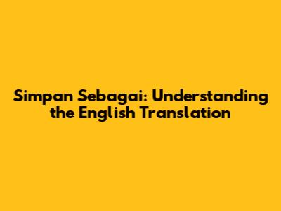 Hey guys! Ever wondered what "simpan sebagai" means in English? Well, you're in the right place! "Simpan sebagai" is a common phrase, especially if you're using computer software or dealing with digital files. It's super useful to know its English equivalent so you can navigate software, understand instructions, and communicate effectively in an international context. Let's dive into the nitty-gritty of this simple but essential phrase.
